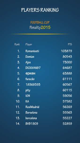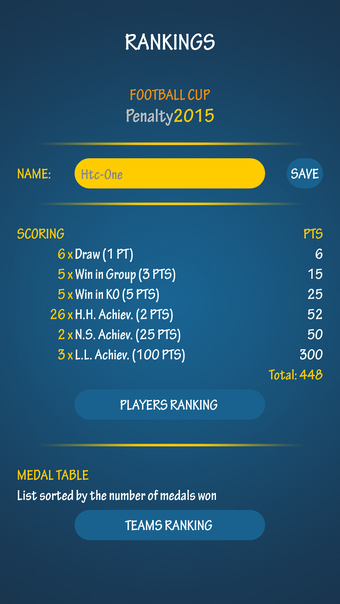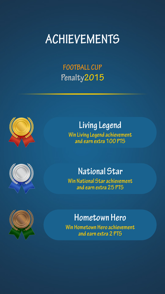 Den fotboll straff cupen 2015 är en fotbollssimulering med många olika element, som är avsedd att vara ett roligt spel för alla sportfans.